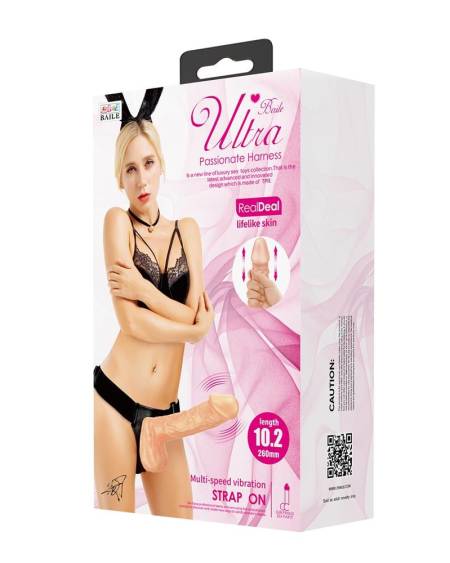 26 cm Belden Bağlamalı İçi Dolu Titreşimli Büyük Strapon Penis