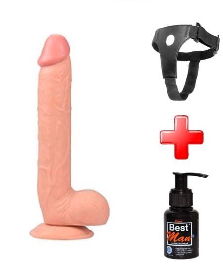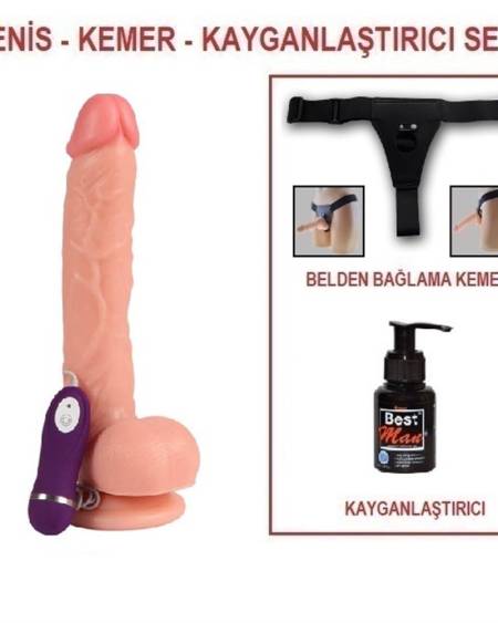 26 cm Belden Bağlamalı Titreşimli Realistik Dildo Penis Set